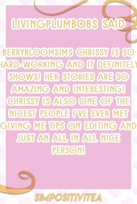 berrybloomsims Uncategorized September 23, 2018December 6, 2018 1 Minute simpositivitea: @berrybloomsims KIMMY. You are so sweet!!! This made my day. I am so happy to have met you and talk with you daily! 💜❤💖💓❤😘 Share this: Share on X (Opens in new window) X Share on Facebook (Opens in new window) Facebook Like Loading... Related Published by berrybloomsims View all posts by berrybloomsims Published September 23, 2018December 6, 2018