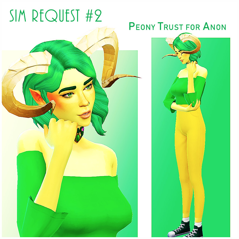 Nonnie asked: Hello! I love your stuff so a berry sim from you would make me super happy! City living, get to work, cats and dogs, jungle adventure, outdoor retreat, vampires gp. Ya female, pastel yellow and green being the main colors. Her name is Peony Trust, she loves bees and trees. Cc as much as you want! If you can horns,elf ears, and fangs please! Public download